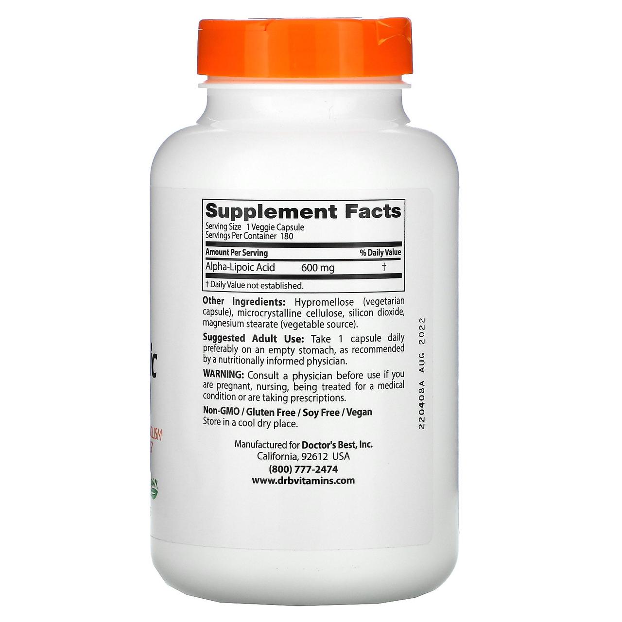 Doctor's Best, Альфа-липоевая кислота (Best Alpha-Lipoic Acid), 600 мг, 60 растительных капсул 962 руб . Подробнее