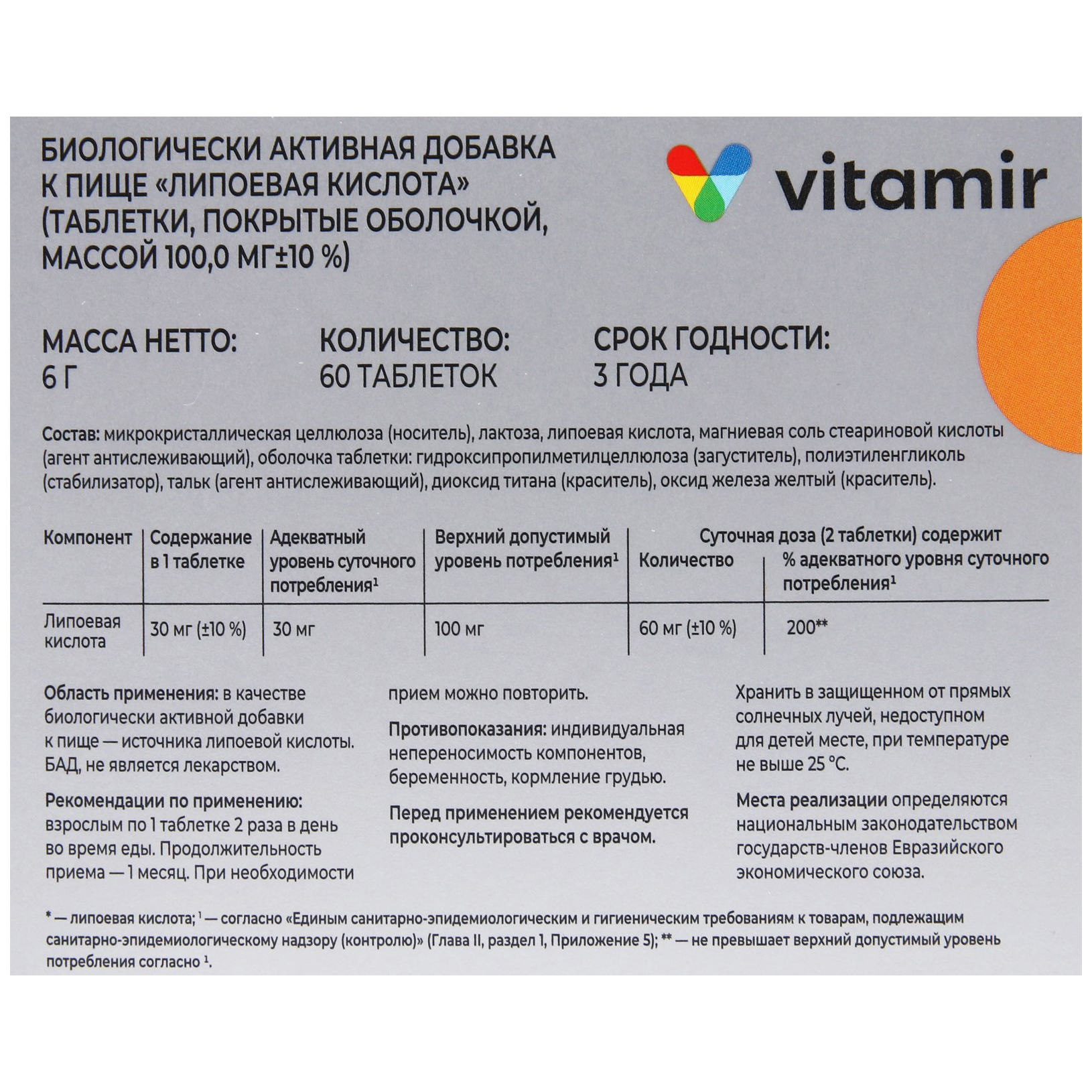 Липоевая кислота дозировка в таблетках
