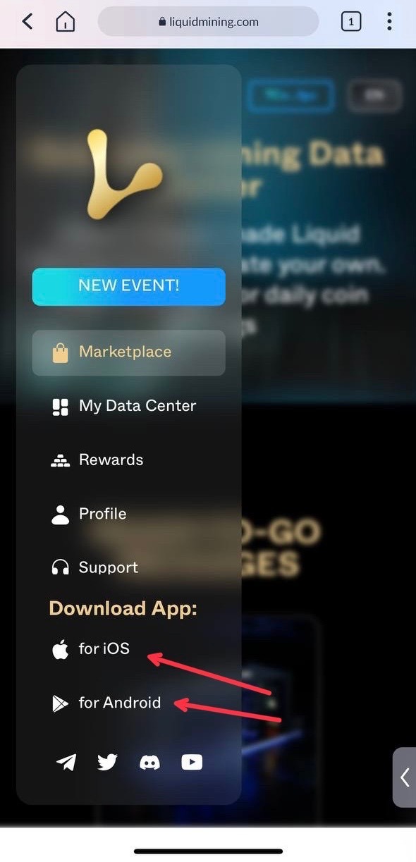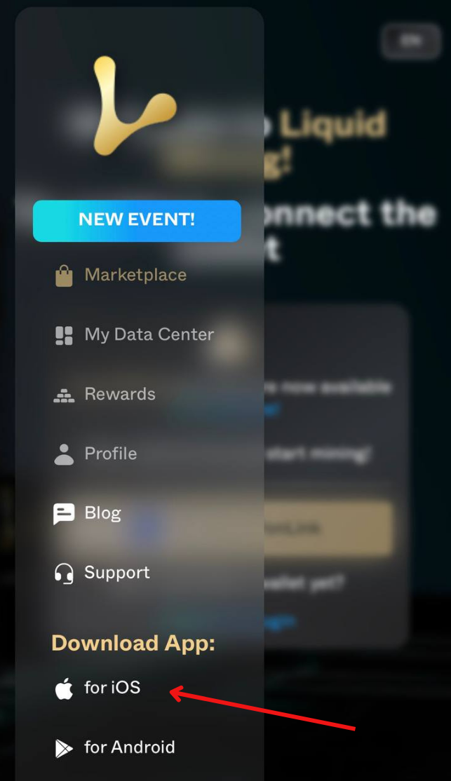 • The visit the Liquid Mining website https://liquidmining.com/ and choose the iOS version and it will automatically direct you to where you can download the App,