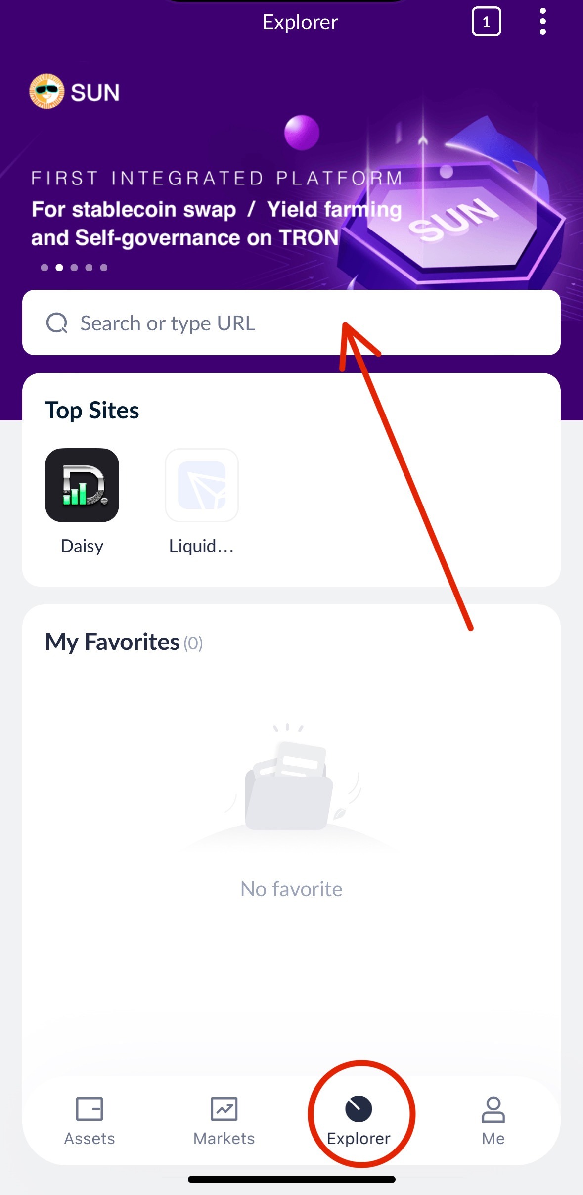 3. Go to the Explorer/Browser in the TronLink App