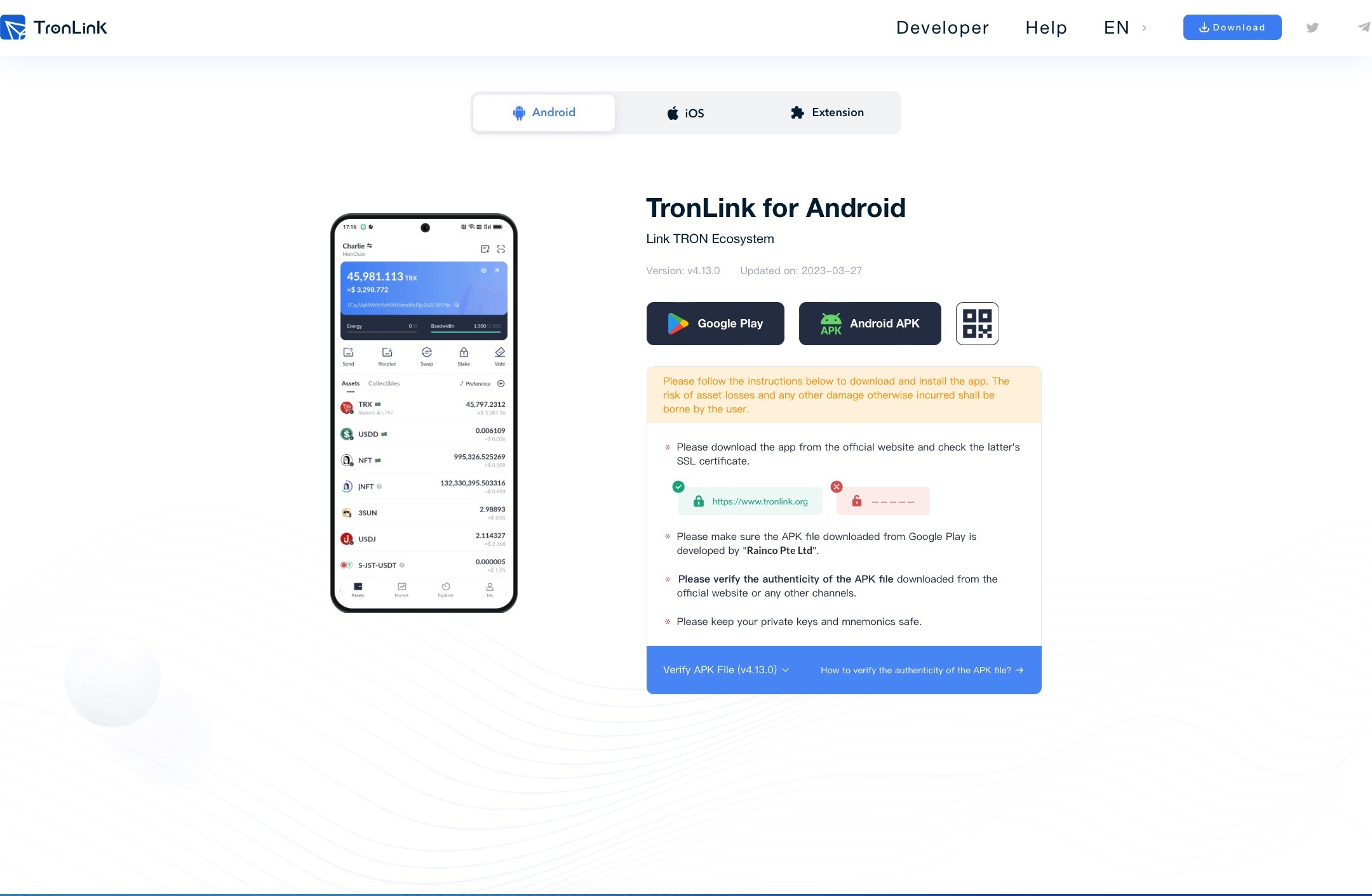 Download the TronLink browser extension or mobile application suitable for your device using the link of the official website: https://www.tronlink.org/dlDetails/