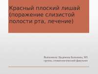 Эффективность лечения сочетанного проявления красного плоского лишая на слизистой оболочке полости рта . Э . Р . Гайсина . студентка 5-го курса, кафедра терапевтической стоматологии ГОУ ВПО «Казанский государственный медицинский университет» Росздрава .