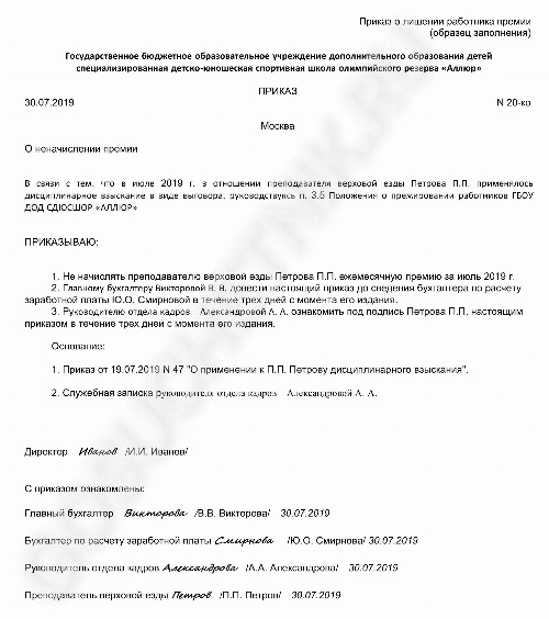 Лишают ли премии за прогул
