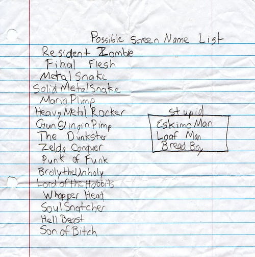 List Of Screen Names For Guys