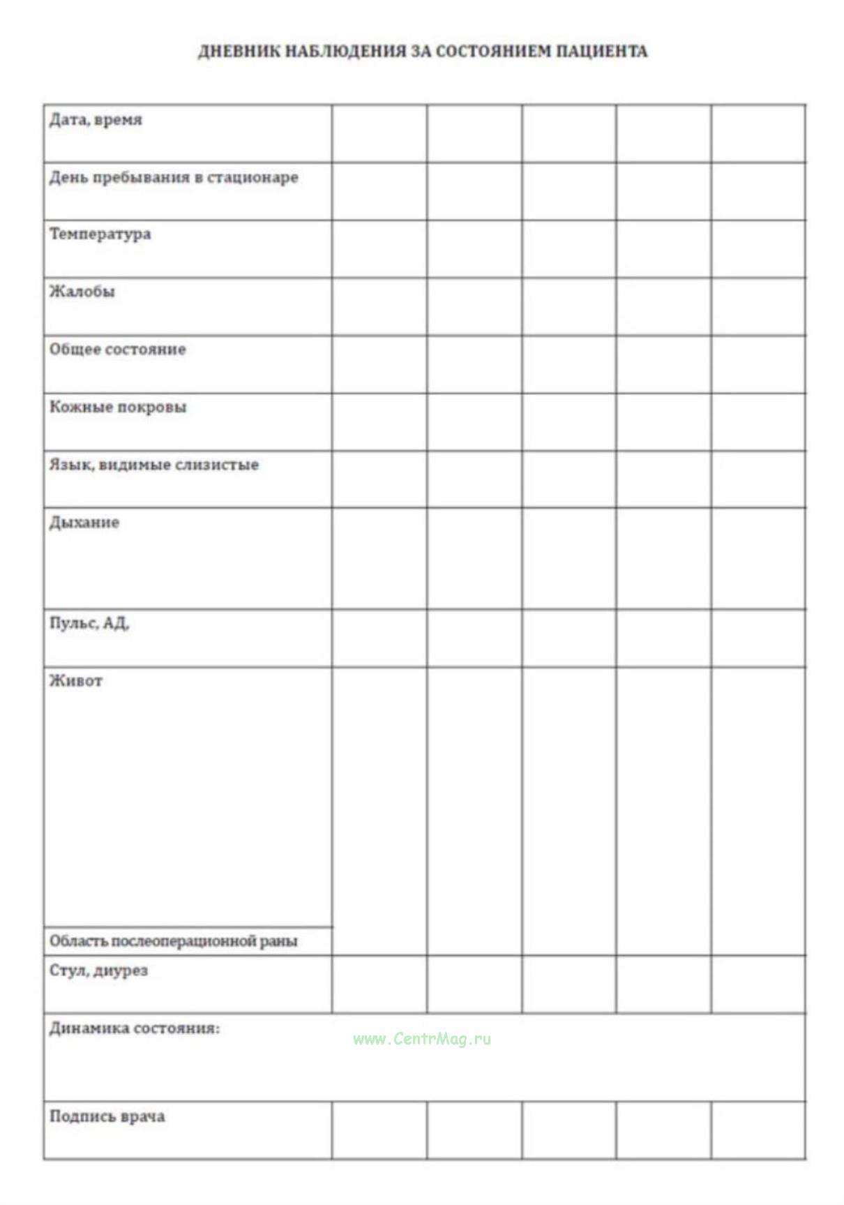 Лист наблюдения за пациентом заполненный 130 фото