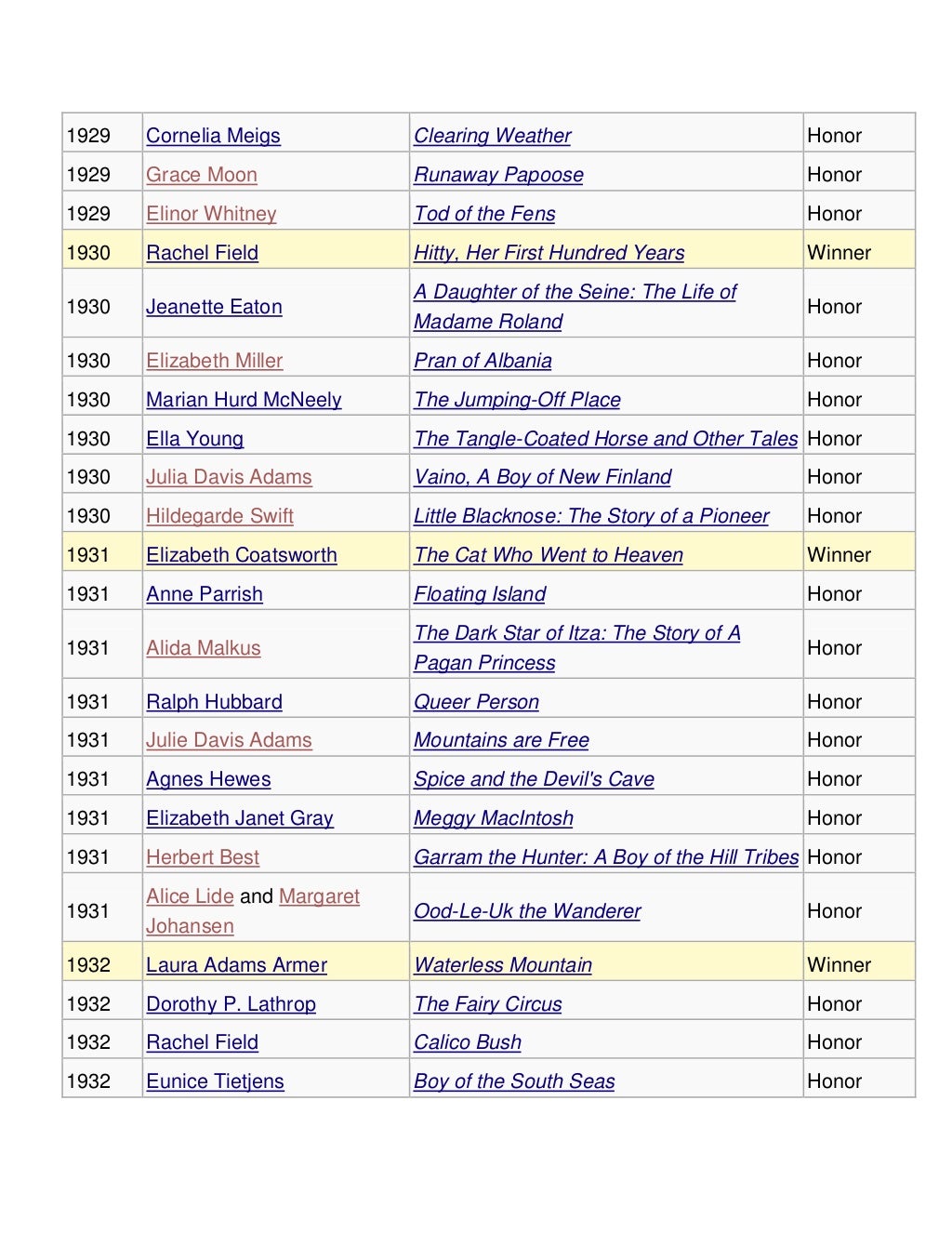 List of winners