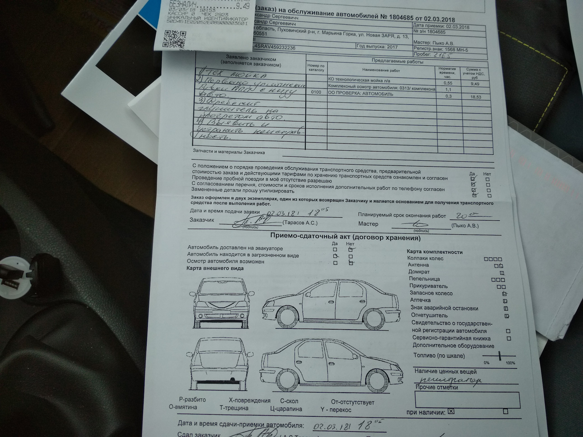 Лист повреждений автомобиля