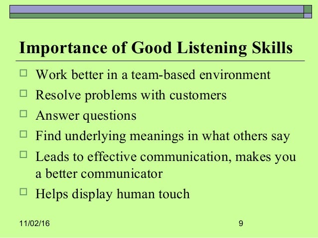 Listening is one of the most important skills that a person should possess . How well a person listens has a major impact on job effectiveness, and on the quality of relationships with others . The way to become a better listener is to practice active listening .