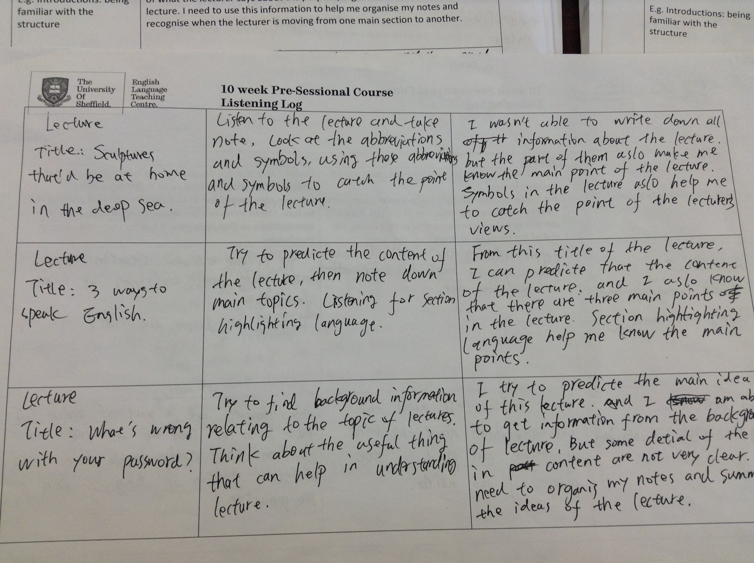 Listening log
