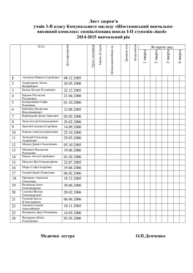 Листок здоровья класса 106 фотографий