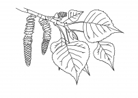 Раскраска берёза . Распечатать картинки листьев березы .
