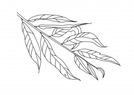 Листья ивы в форме яйца, сужаются к черешку, к краю более широкие . Верхняя часть листа бледно-зелёная, нижняя - голубого оттенка, листовая пластина покрыта мягким ворсом .