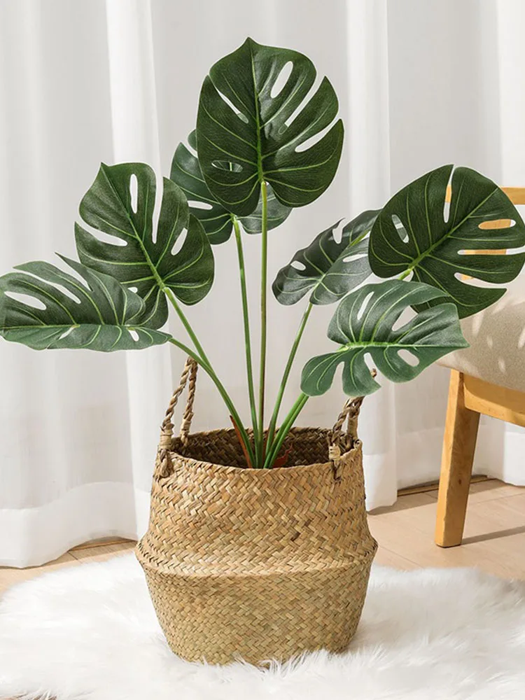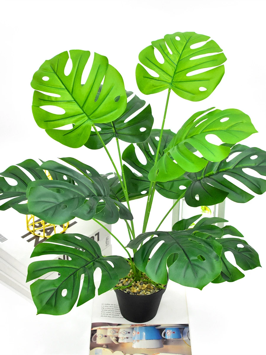 Резные листья монстеры достигают в диаметре 45 см, причем молодые листья - цельные, но со временем в них появляются отверстия, и чем крупнее становятся листья, тем больше в них прорезей .
