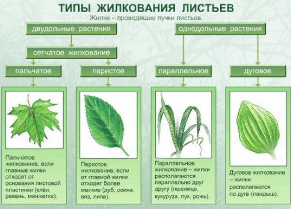 Виды листьев деревьев и их функции (фото)