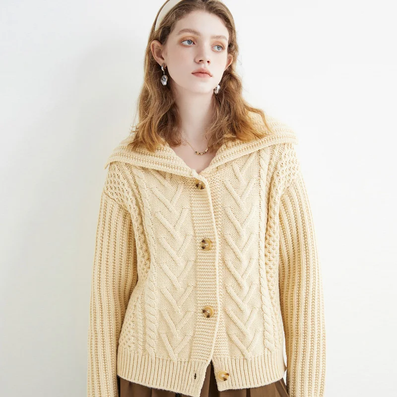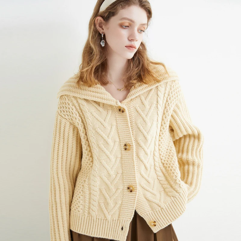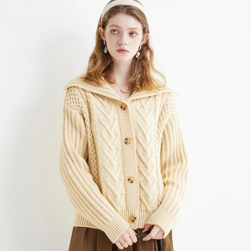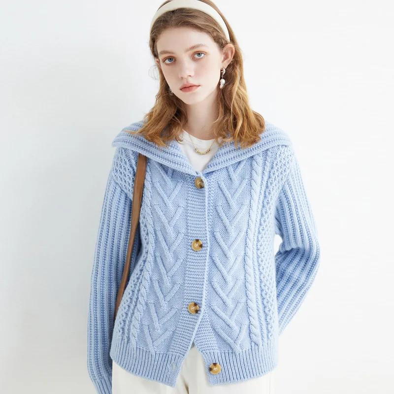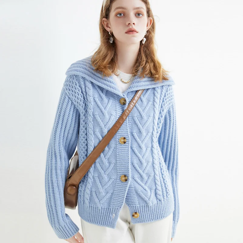 «Literary Retro Sweater Large Lapels Lazy Wind Loose Coat navy Collar Heavy Cable Sweater» по лучшей цене на рынке! Всего за 20$ (1900рублей)