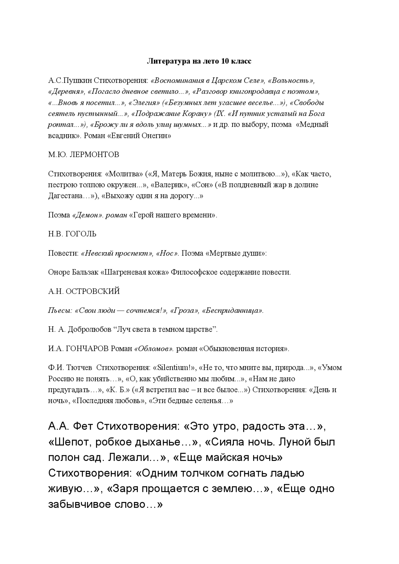 Литература 10 класс темы