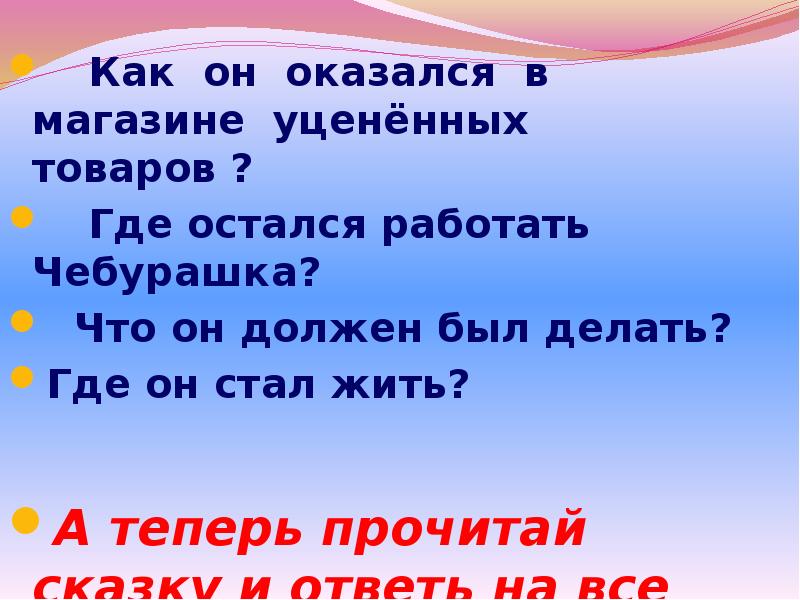 Литература 2 класс про чебурашку составить план