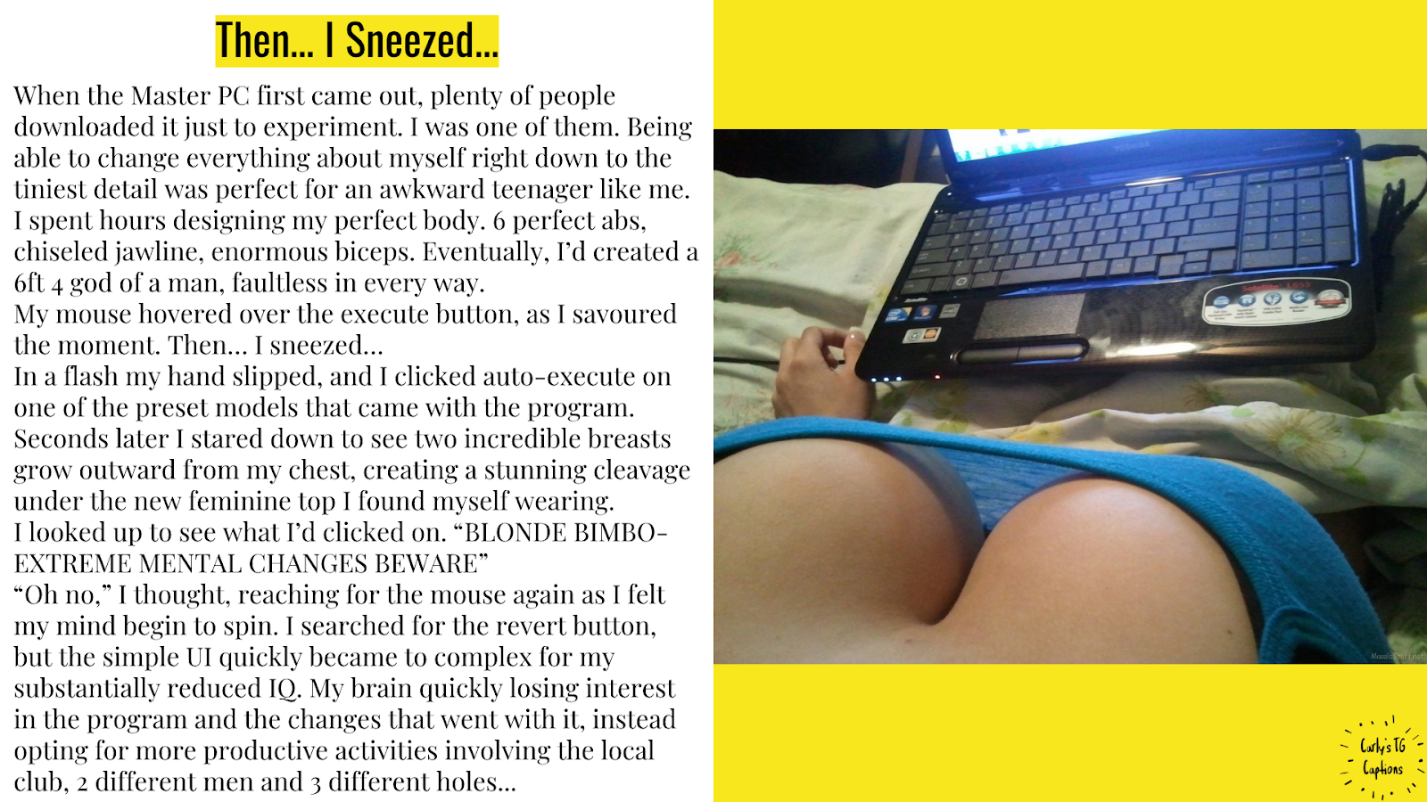 It is with this that I try to honor, JR Parz. The great and powerful wizard behind the original Master PC story. I hope that this story can do justice to the greatness that was his writing. s