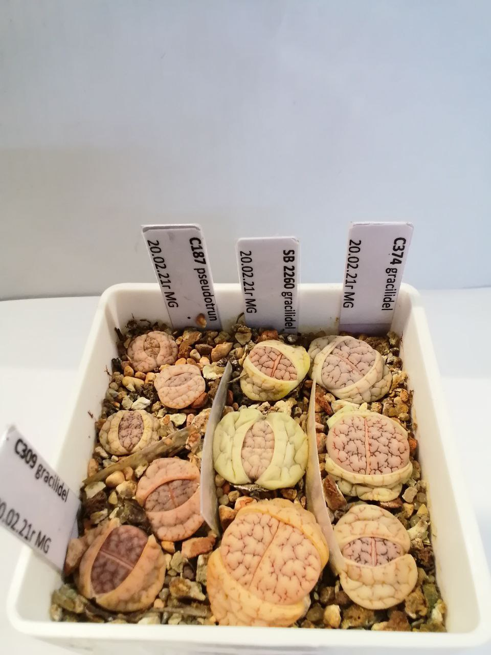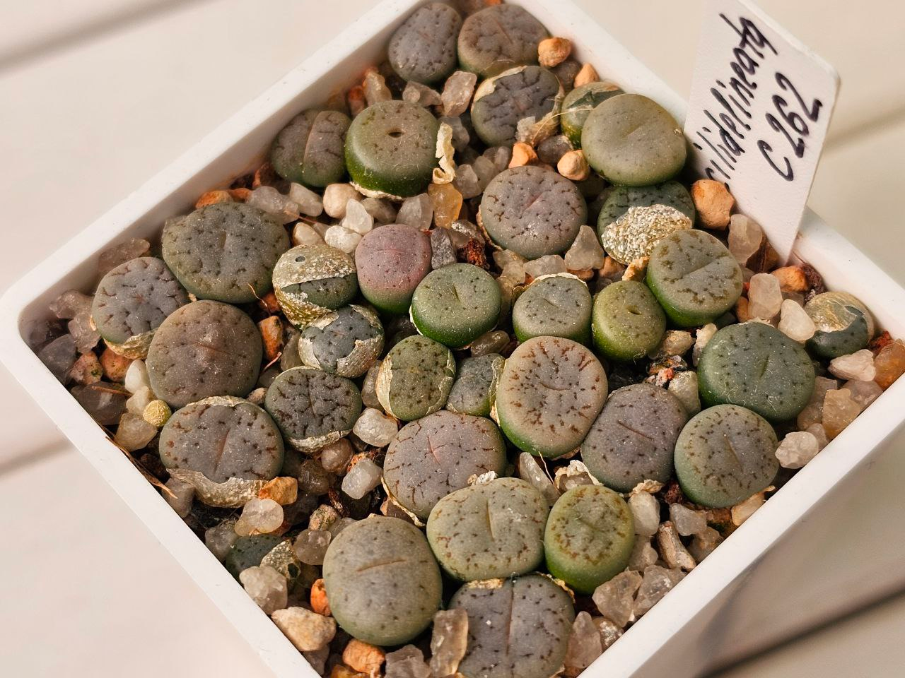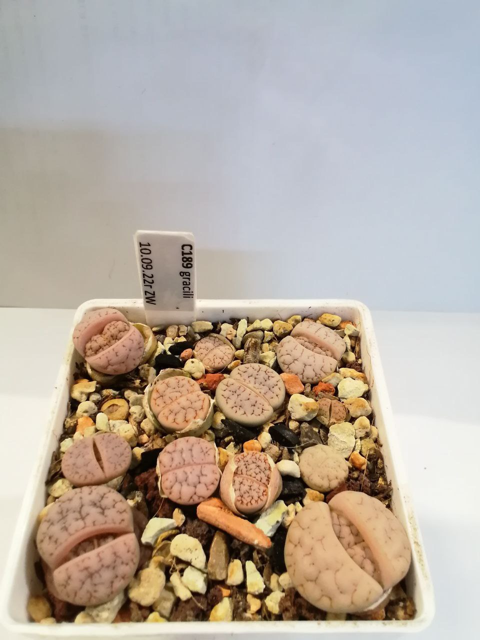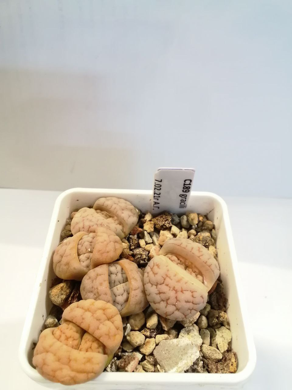 Lithops gracilidelineata subsp. gracilidelineata var. gracilidelineata 'Ernst's Witkop'.