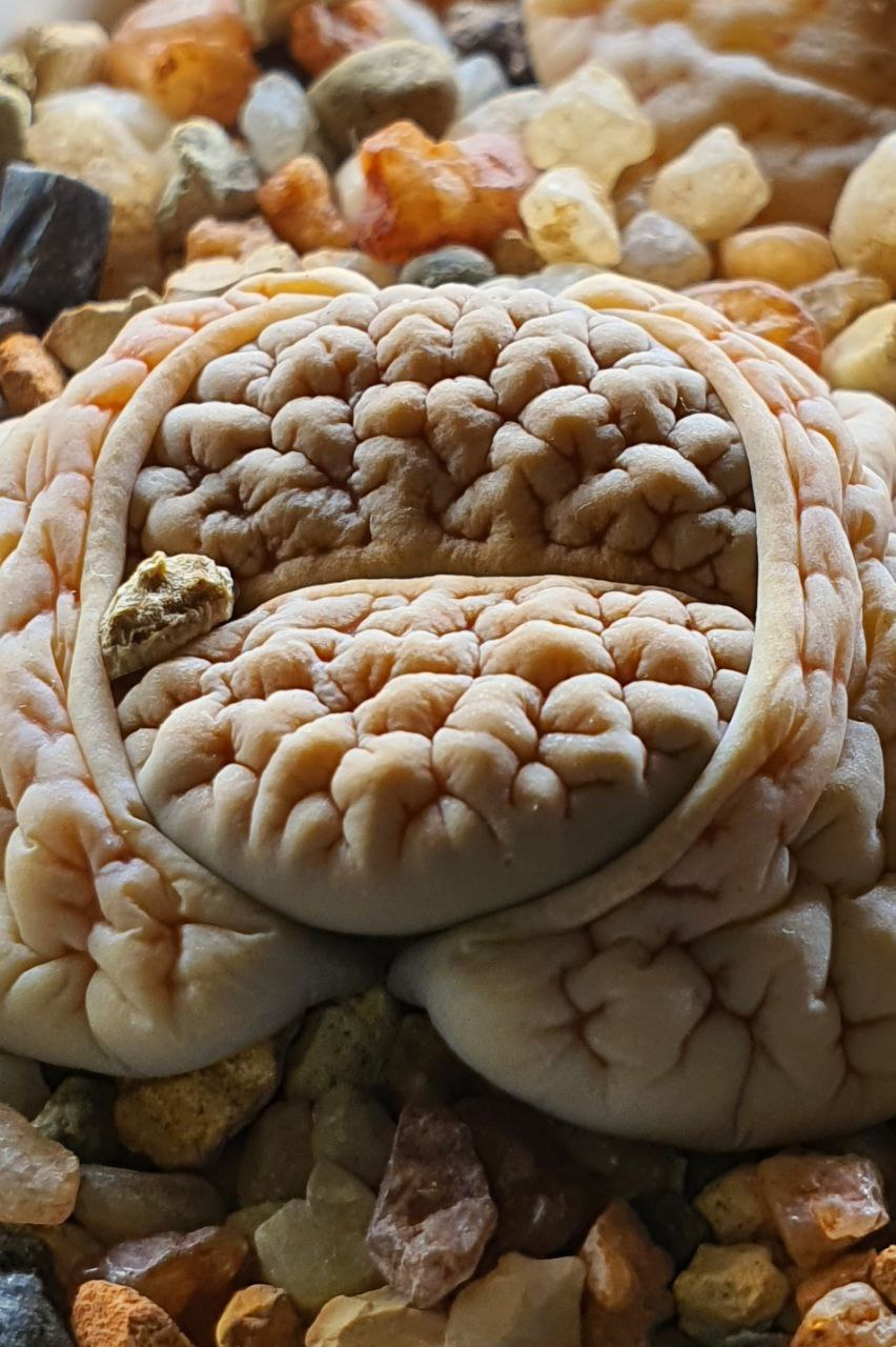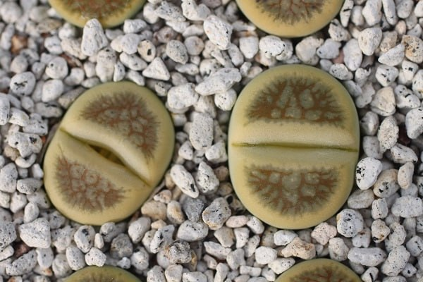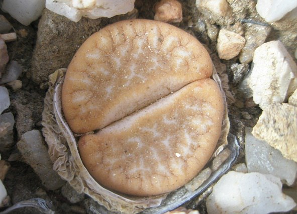 Lithops gracilidelineata subsp. gracilidelineata var. gracilidelineata 'Cafè au Lait'. (cultivar).