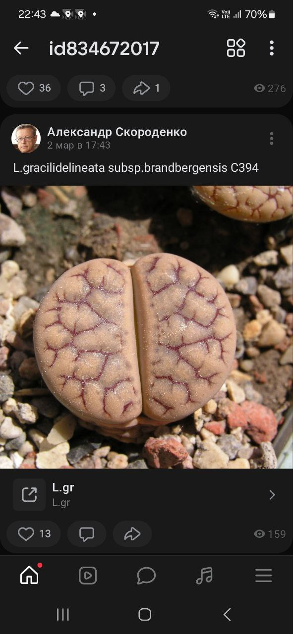 Lithops gracilidelineata, пожалуй, самое популярное растение у энтузиастов среди "не культиваров". Из-за тонких линий и часто глубоких углублений на лицевой поверхности листьев, особенно у var. waldroniae, этот вид часто занимает первую строчку во многих списках желаний. К сожалению, преимущественно одноголовая форма не делает его популярным на выставках. Хотя большинство растений имеют общий серый цвет, а привлекательный подвид brandbergensis — один из самых ярких литопсов, пользующийся даже большим спросом, чем subsp. gracilidelineata.