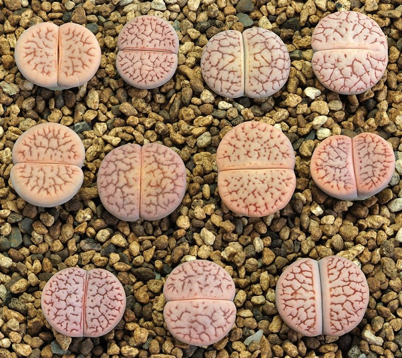 Lithops N.E.Br. gracilidelineata Dint. subsp. gracilidelineata var. gracilidelineata ‘Paw Pads’. (cultivar)