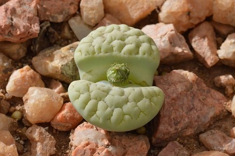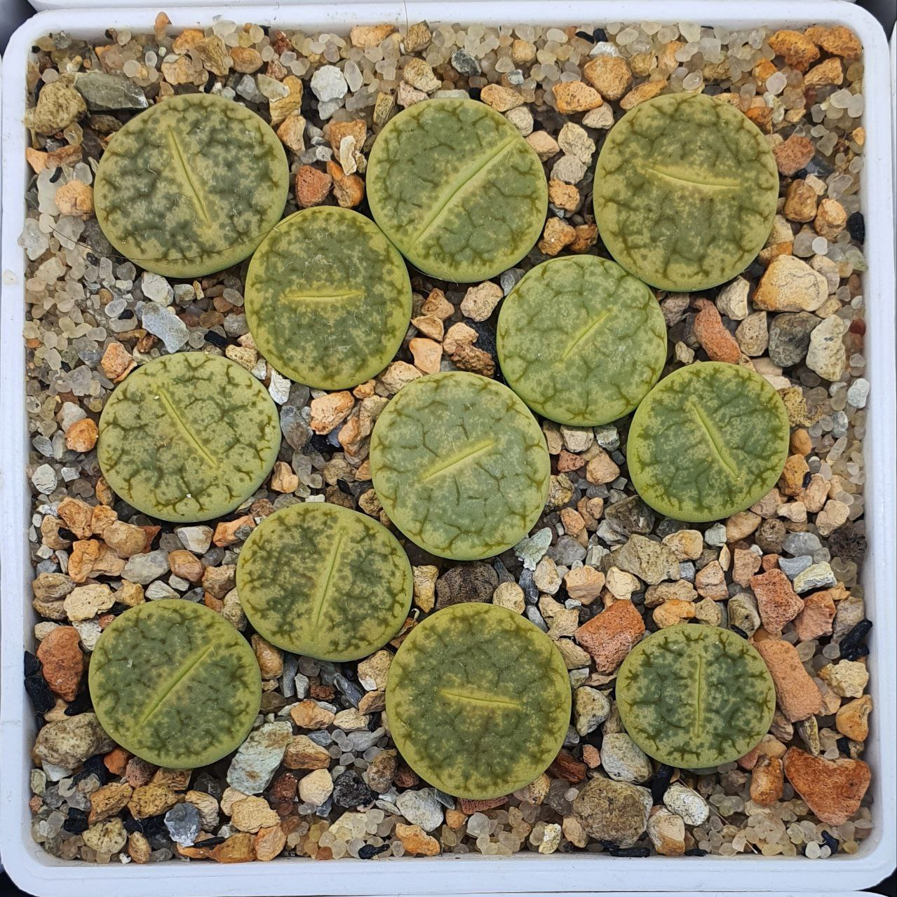 Lithops N.E.Br. gracilidelineata Dint. subsp. gracilidelineata var. waldroniae H.W.deBoer ‘Federvogel Green’. (cultivar)