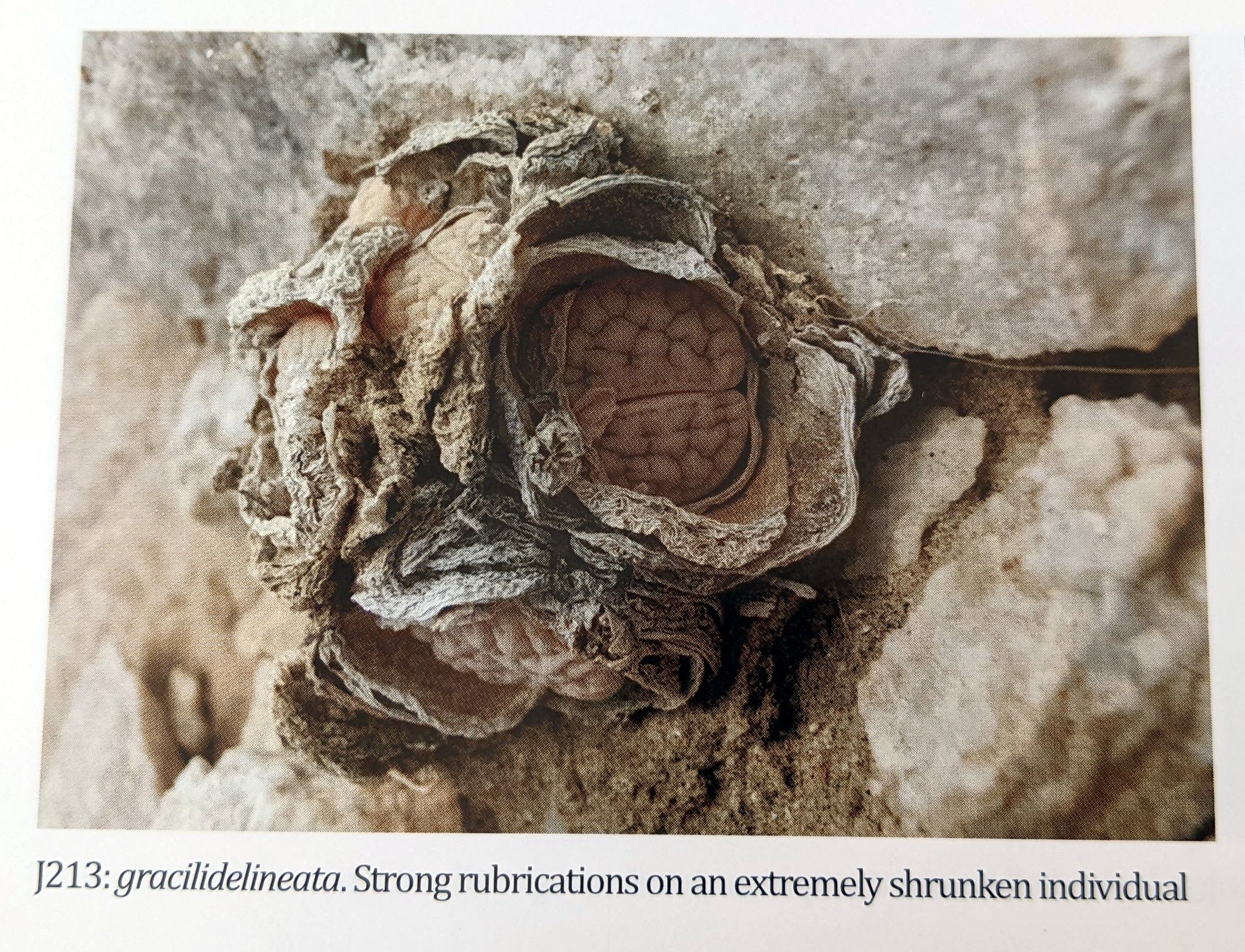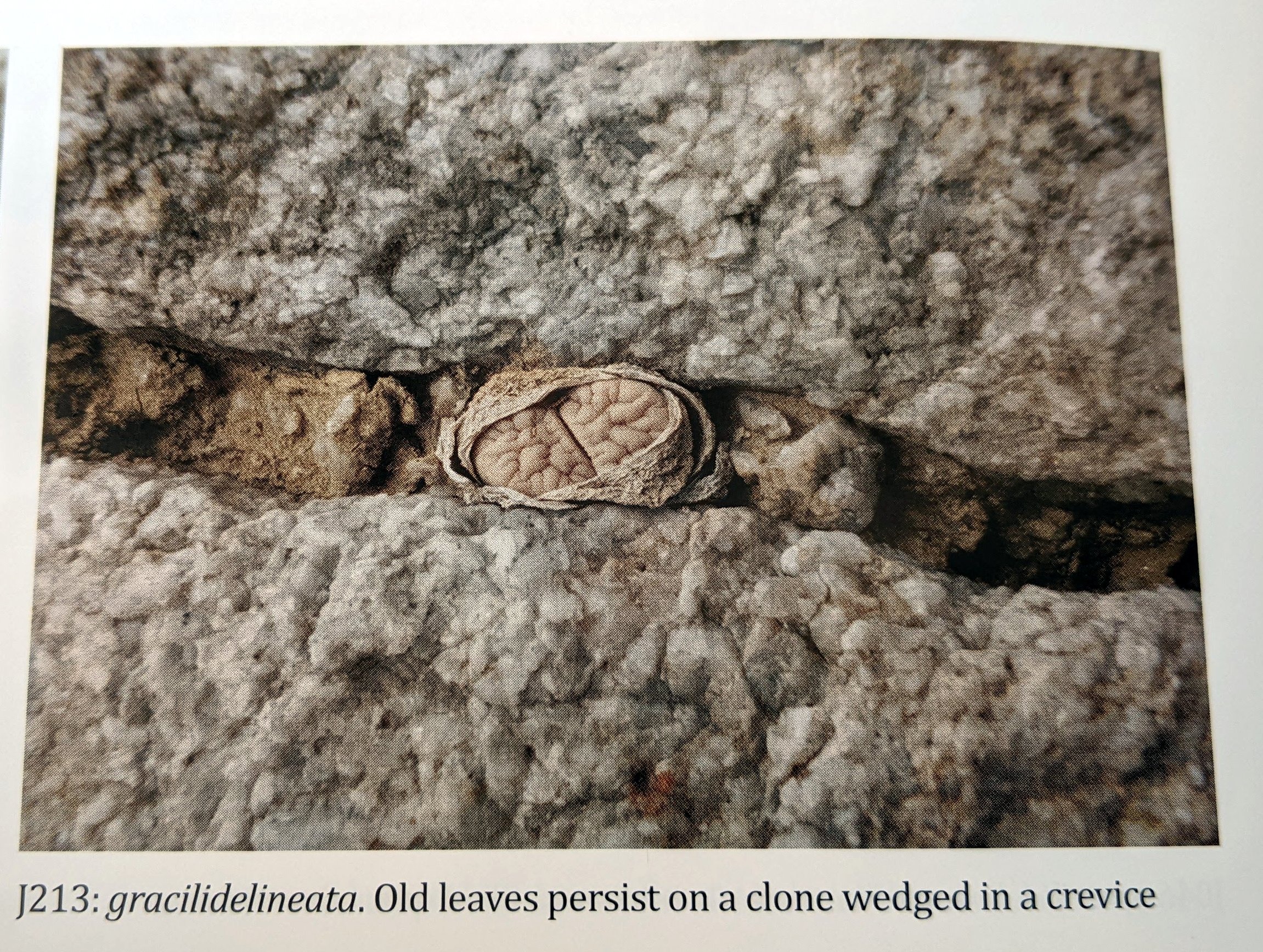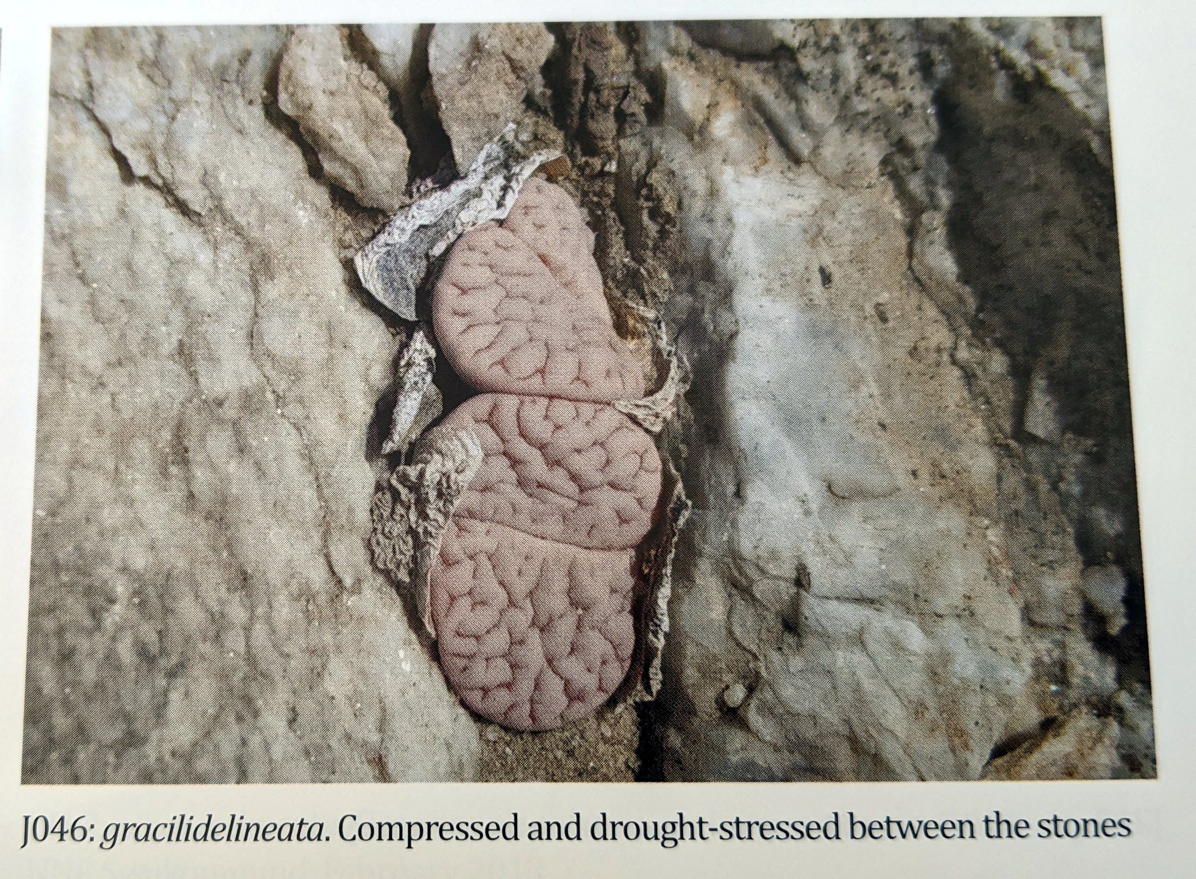 Великая Вельвичия у реки Свакоп привлекает множество туристов, и мы посетили три колонии L. gracilidelineata в пяти километрах от знаменитого живого ископаемого (1046, J213, J214). Большинство растений представляли собой типичный var. gracilidelineata, но некоторые имели более тонкие линии, как у var. waldroniae; у одного было восемь голов (обычно это одноголовые растения), а одна молодая особь была отмечена точками pseudotruncatella.