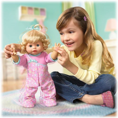 Walk & Giggle doll keeps her "mommy" busy as she walks, talks, giggles, and interacts. .