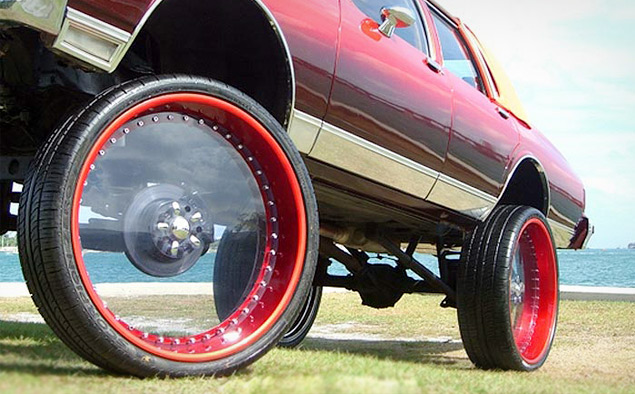 Черные диски с красной окантовкой на белой и черной машине . . .