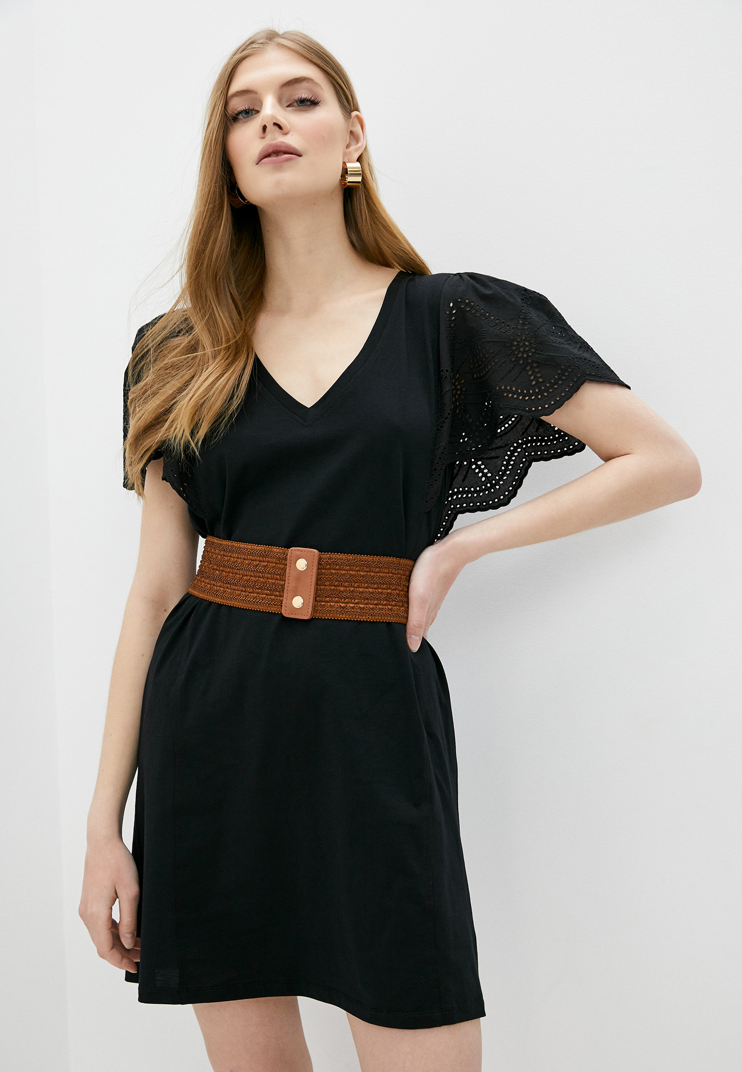 платье с цветочным принтом и поясом