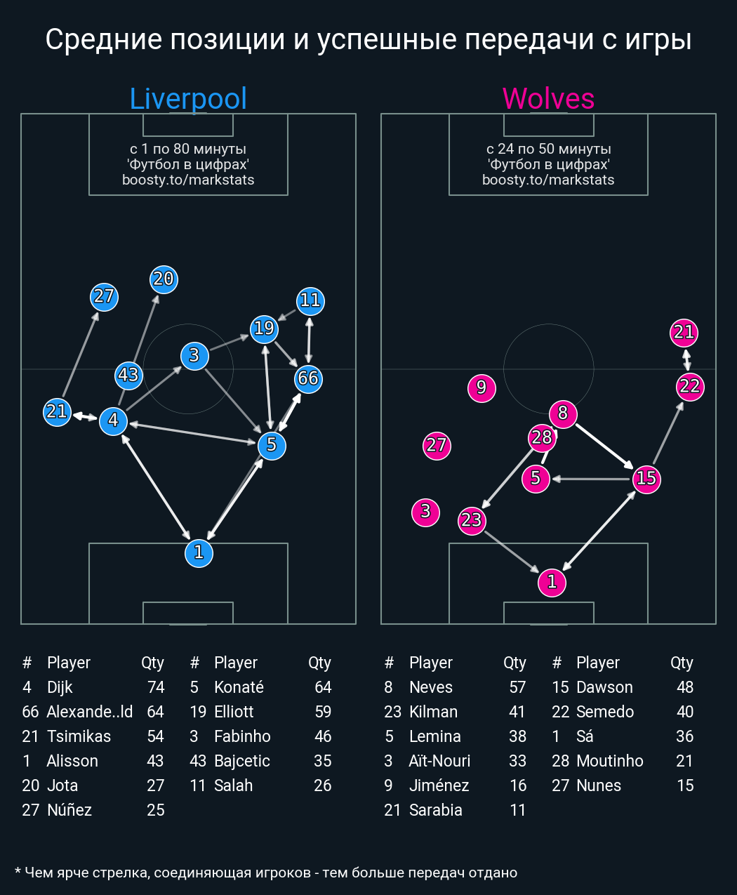 61 успешных передач из 76 попыток (2 под удар, 10 с продвижением, 14 на трети соперника)