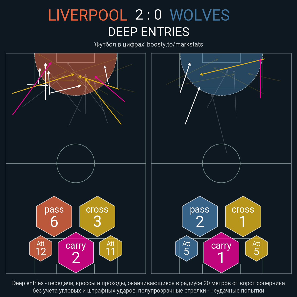 20 успешных передач из 26 попыток (1 под удар, 3 с продвижением, 7 на трети соперника)