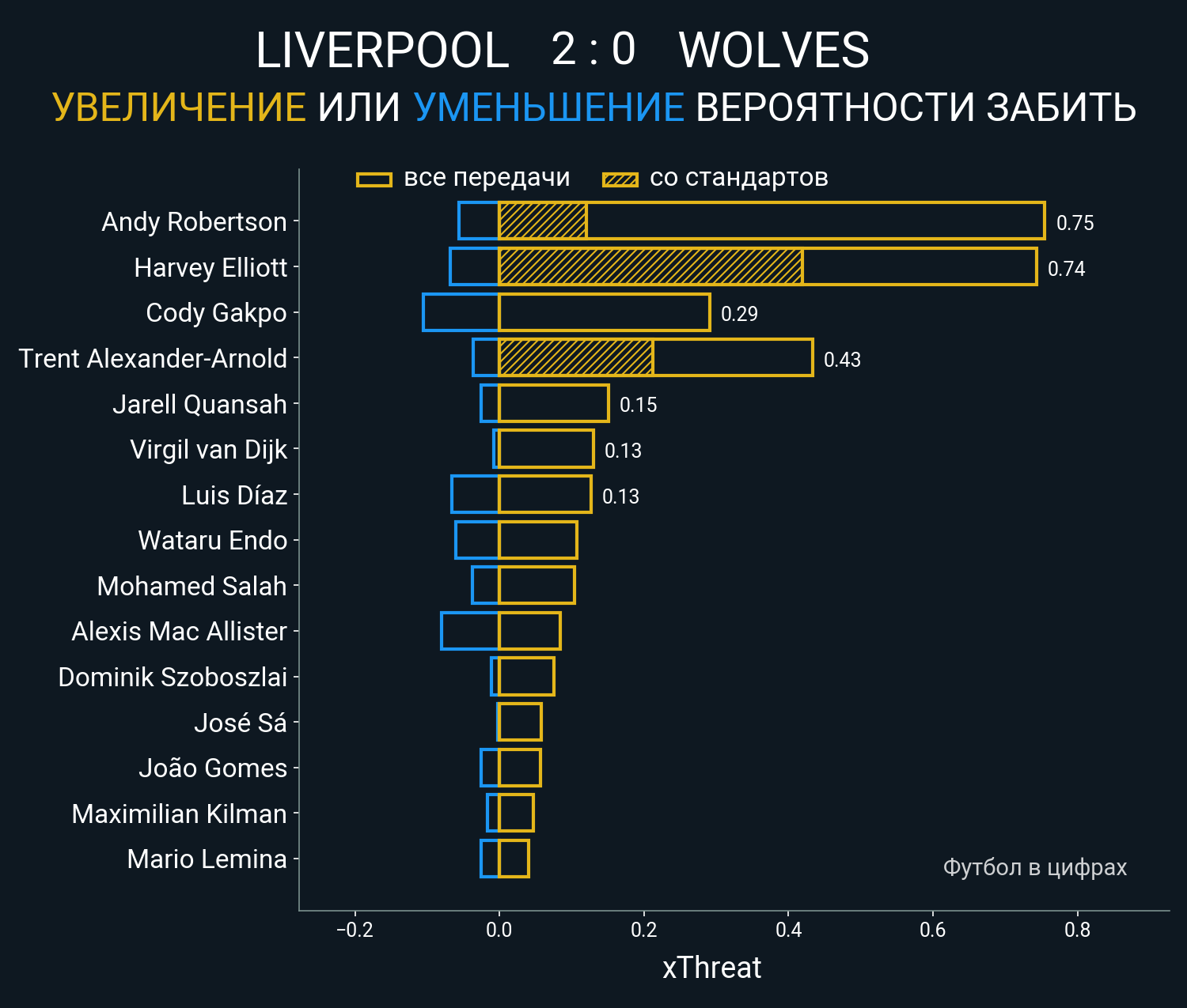 0.32 очка xT (+0.42 со стандартов)