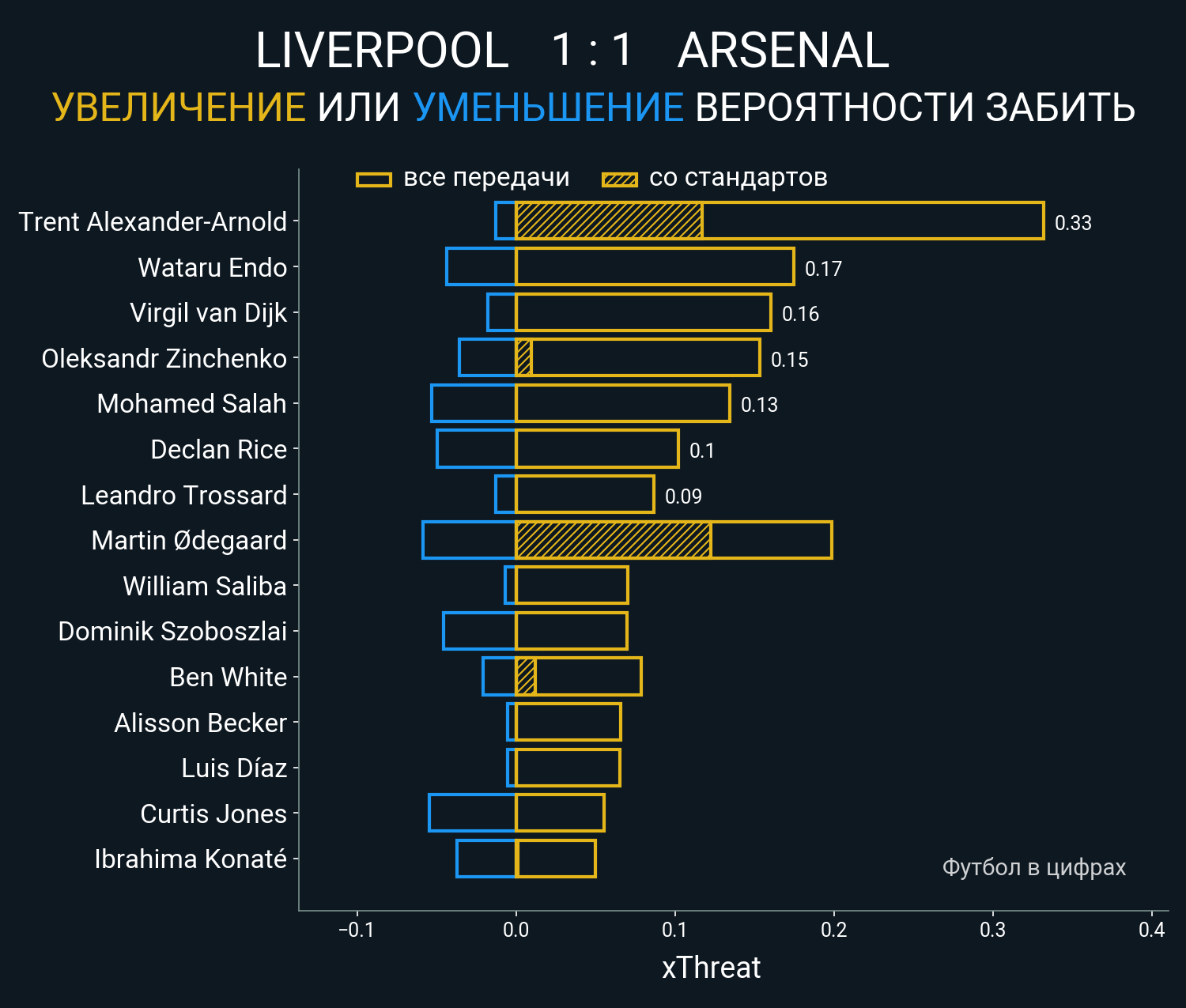 0.21 очка xT (+0.12 со стандартов)