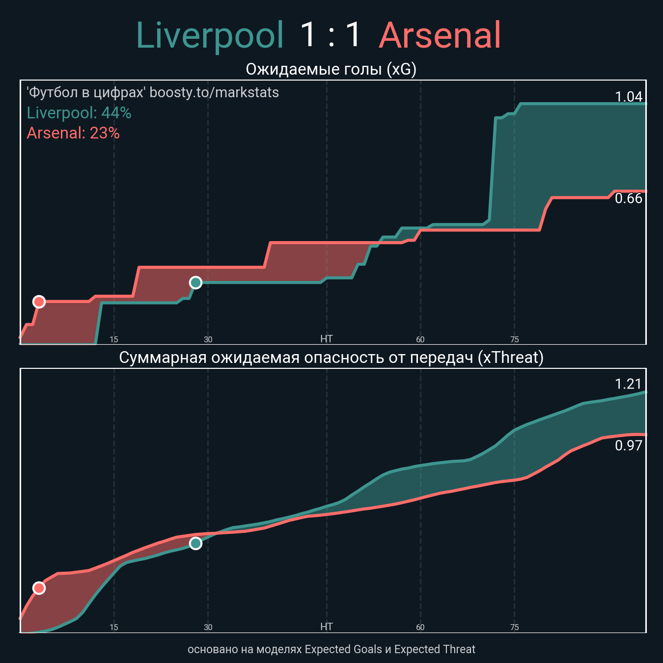 Ожидаемые голы (NPxG): 1.04 - 0.66
