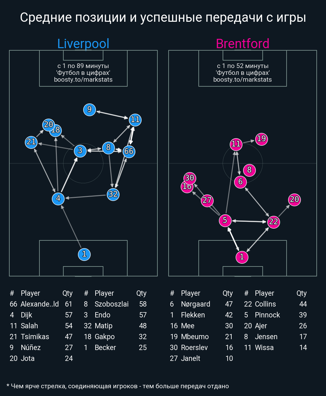 54 успешных передач из 61 попыток (11 с продвижением, 1 на трети соперника)