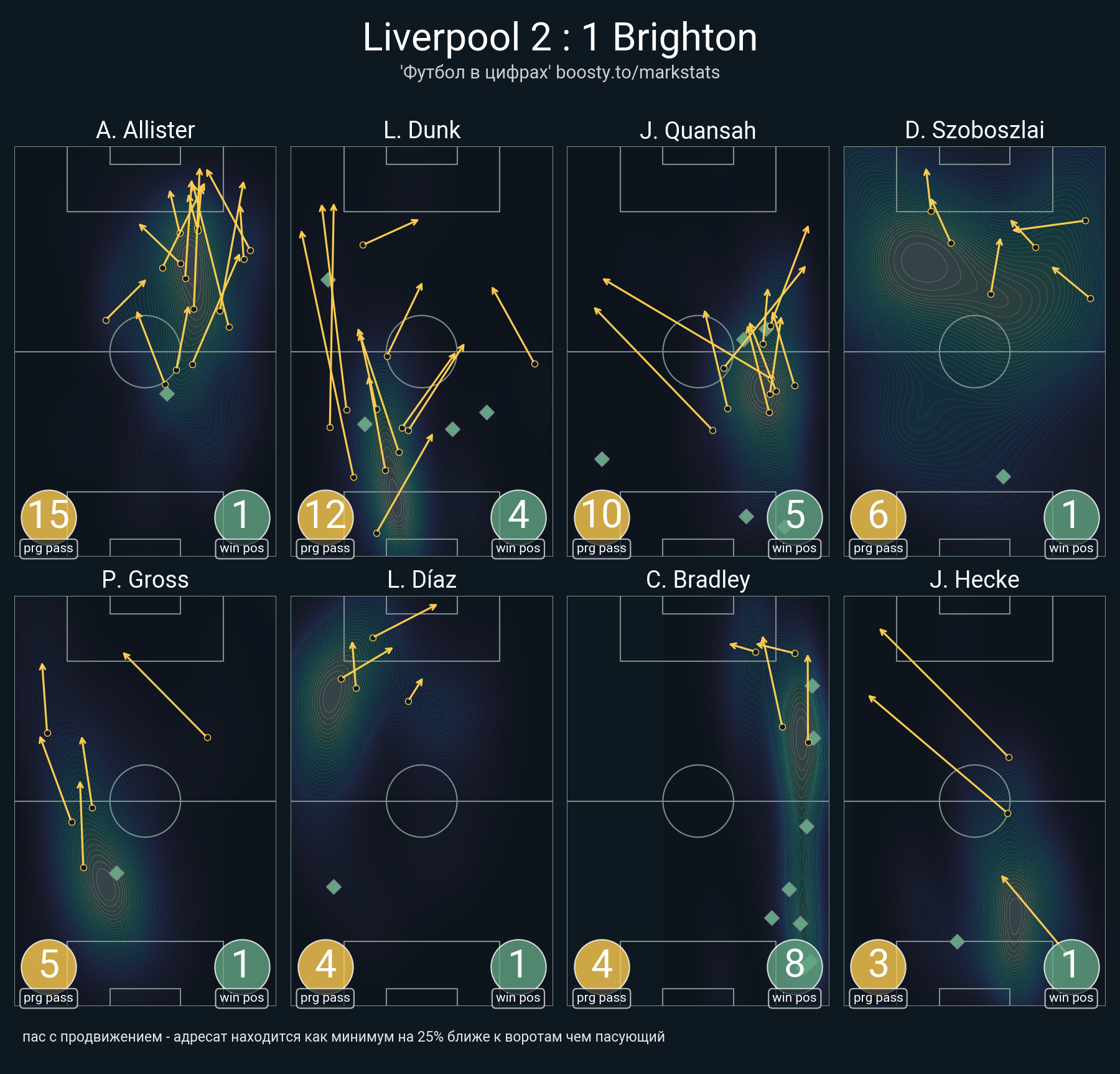 58 успешных передач из 65 попыток (1 ассист, 5 под удар, 15 с продвижением, 22 на трети соперника)