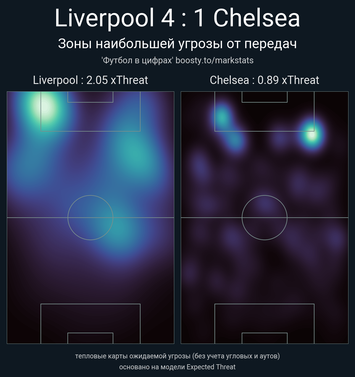 xThreat без учета угловых: 2.05 - 0.89