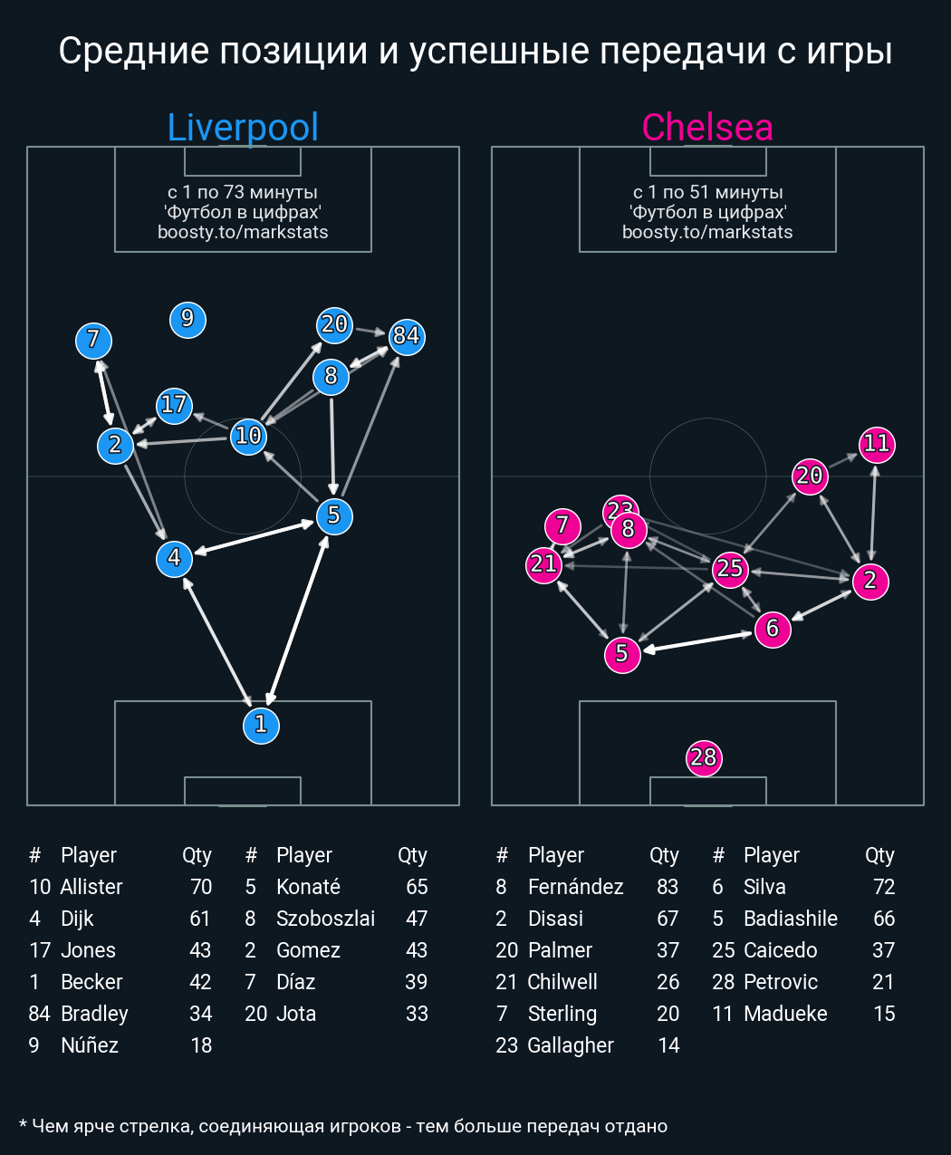 68 успешных передач из 83 попыток (3 с продвижением, 4 на трети соперника)
