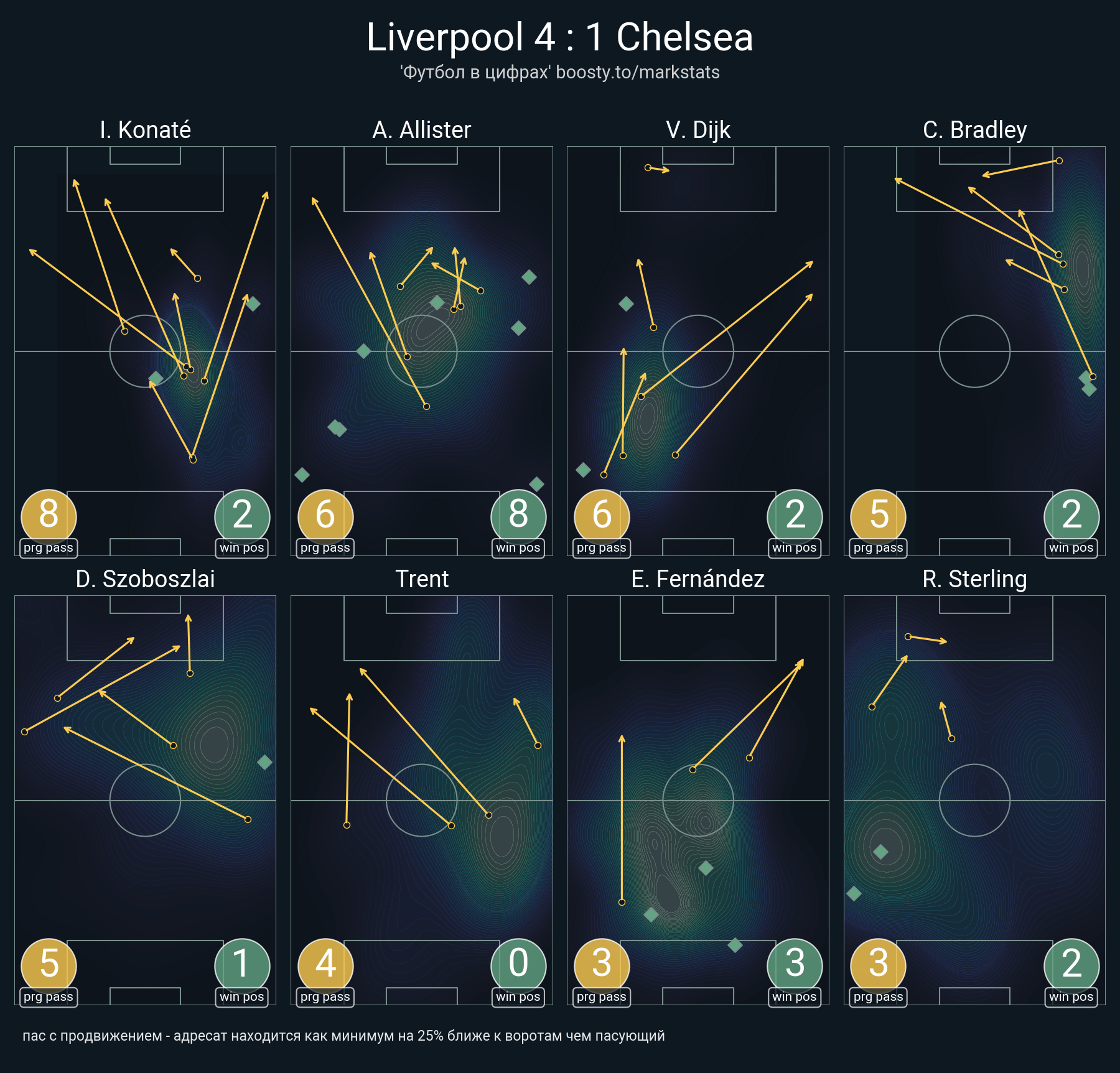 33 успешных передач из 40 попыток (1 ассист, 4 под удар, 5 с продвижением, 11 на трети соперника)