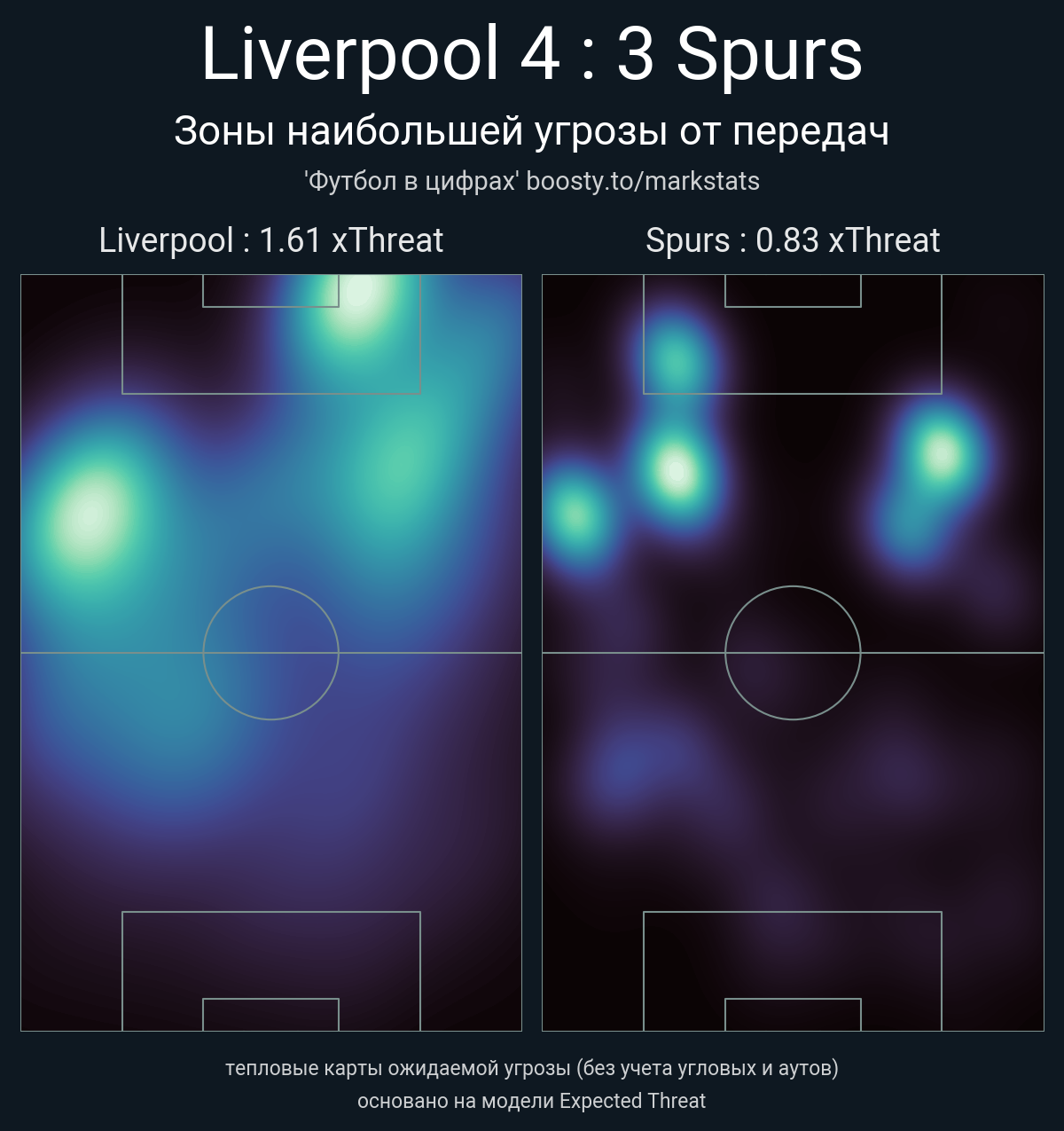 xThreat без учета угловых: 1.61 - 0.83