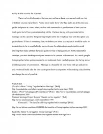 Living together before marriage Essay Example . Maybe, he likes to spend the whole weekend partying with his friends at a night club! Believe it or not its little details like these that can make or break a relationship . He has learned what kind of bad habits I have and whether or not he can get rid of them .