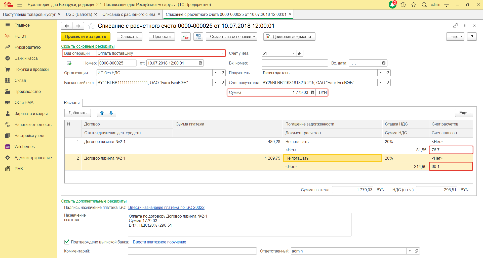 Лизинг в 1с 8.3 на усн 112 фото