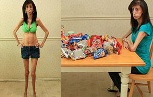 FYI, she's not anorexic or anything guys, she just has a super rare medical condition. She's blind in one eye and has to eat a ton of calories a day, but other than that, her organs/bones/etc are completely healthy.