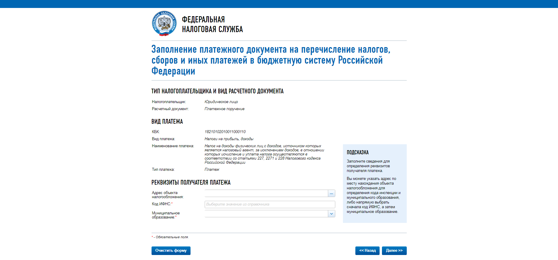 Лк налогового платежа