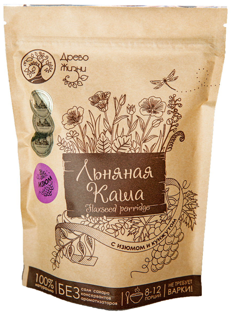 RealCaps Каша льняная натуральная, 400 г . Древо жизни Каша льняная с кэробом и кунжутом "Древо Жизни" 400 г .