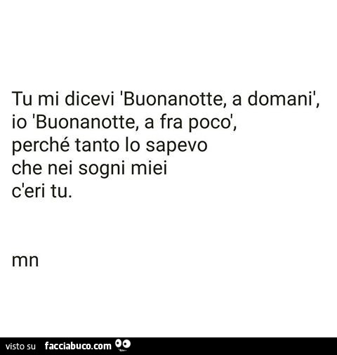 Al primo ciao io mica lo sapevo che un po' mi avresti cambiata tutta che mi avresti resa più coraggiosa meno paranoica e meno sola e un poco più capita e più me di quanto io non sia mai stata, mica lo sapevo che avrei tenuto dentro me i tuoi occhi sempre come stelle dentro…
