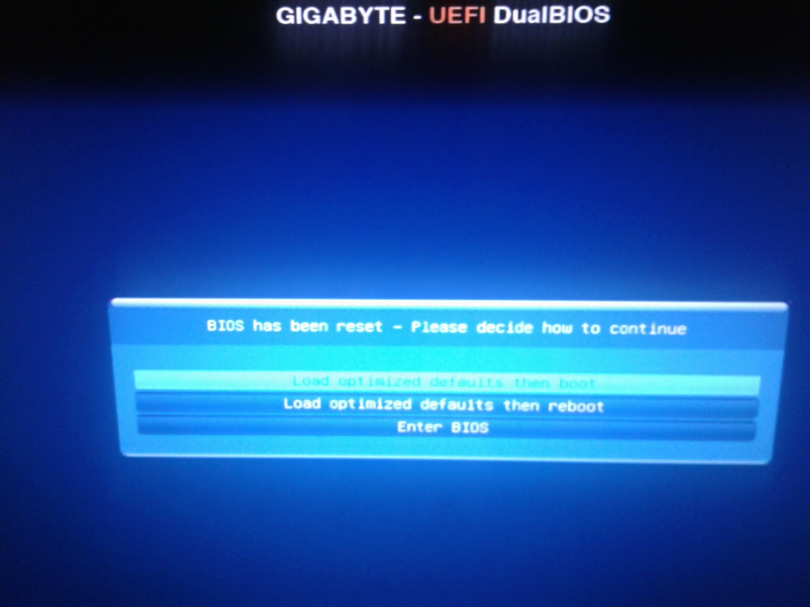 Load optimized defaults reboot