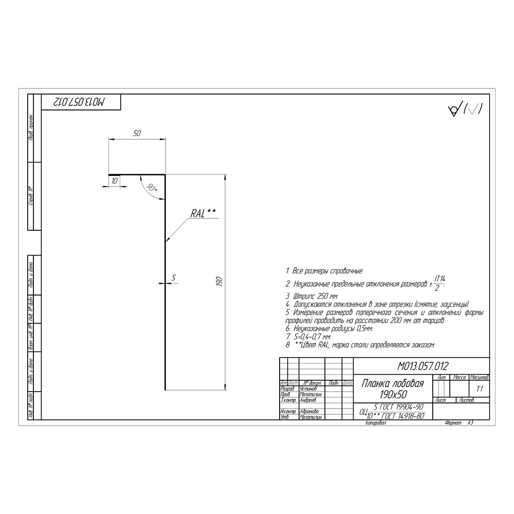 Лобовая планка размер